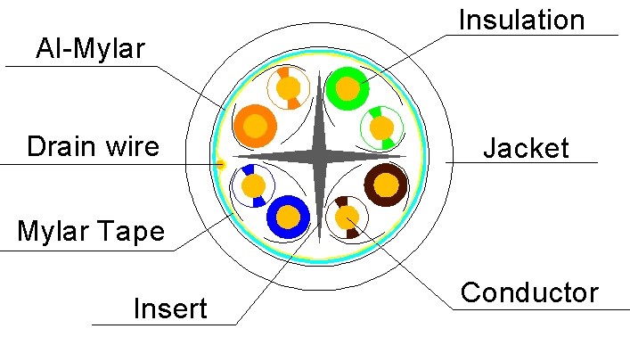Category 6 FUTP Horizontal, 23AWG×4P, With Cross, Double Jacket (OD 8.0mm) |